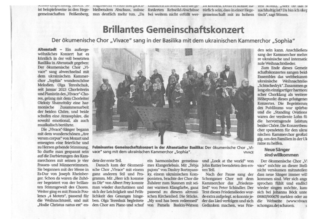 unser Konzert am 28. November in der Stadtpfarrkirche Mariä Himmelfahrt in Schongau